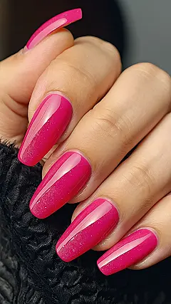 Those super shiny, pink nails are like a tiny party on your fingertips! You could use them to accessorize any outfit, from jeans and a t-shirt to a fancy dress. They’re definitely a conversation starter. Just be prepared for everyone to ask you where you got them done. Hopefully, you remember the name of the salon!