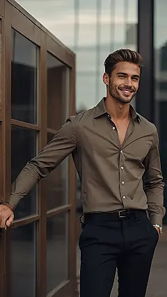 Check out this guy! He’s totally rocking the men’s cocktail attire thing, which is basically the sweet spot between “just rolled out of bed” and “full-on wedding guest mode.” Think of it as dressing up enough to impress your crush but still being comfy enough to sneak extra appetizers. This sharp but relaxed shirt with those dark pants? Perfect for looking like you know what you’re doing at any semi-fancy party, even if you’re just there for the free mini hot dogs. It’s all about looking effortlessly cool without needing a tuxedo or feeling like you’re wearing your dad’s stuff.
