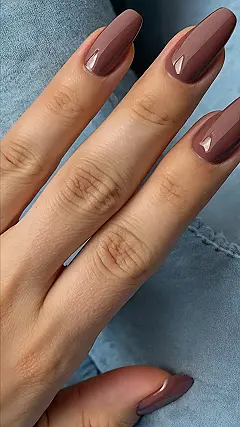 It’s super funny how these nails make the person’s hand look like it’s wearing a tiny, stylish outfit, right? It’s like their nails have their own fashion sense! Who needs red when you can rock a sophisticated brown? It’s all about the autumn vibes, and these nails totally nail it! (Pun intended, of course!).