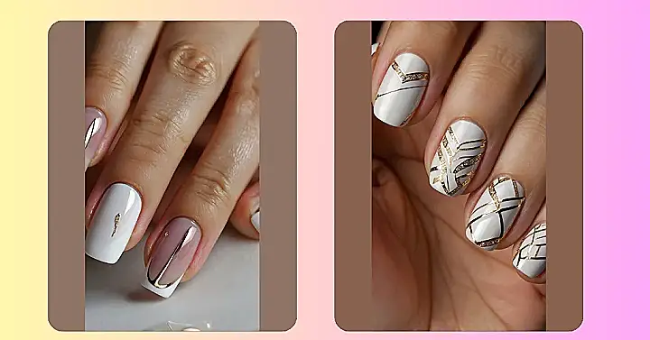 Walking around with nails this fancy feels like I’ve suddenly unlocked a secret level of sparkle. These aren’t just nails, they’re tiny masterpieces with white polish backgrounds sporting gold lines and little gems that catch the light just right. I keep accidentally pointing at things with exaggerated hand movements, just to make sure everyone catches a glimpse of this finger upgrade. Warning: wearing fancy nails like these may result in excessive hand-waving and impromptu disco dances.