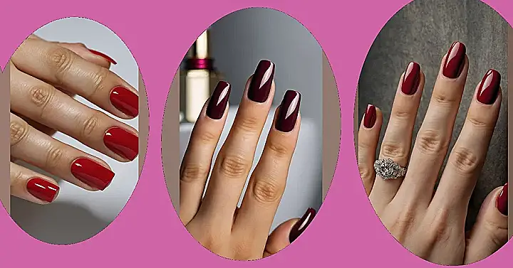 Check out these fancy nails! They’re rocking a deep red color that looks so polished and perfect, they probably cost more than my weekend allowance just to look that good. Honestly, having nails this shiny and put-together makes you feel instantly important, like you should be attending a super secret spy mission or at least getting the best seat in the cafeteria. They just sit there looking fabulous, possibly judging my life choices.