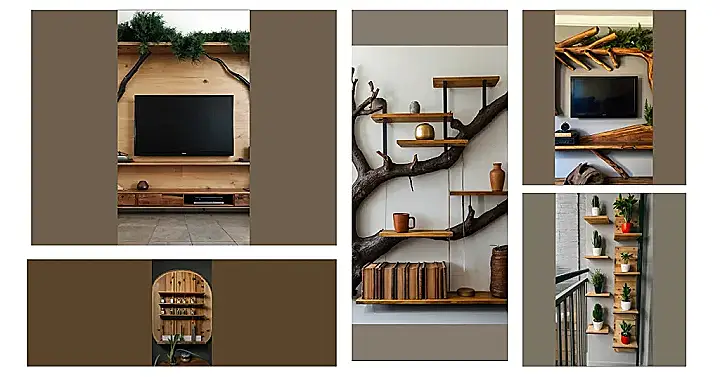 Check out these awesome shelves! They’re not your grandma’s dusty old bookshelves – these are made from real tree branches and look super cool. Imagine all the books, plants, and quirky treasures you could display on these unique shelves. They’re like bringing a bit of the forest inside, without having to deal with any pesky squirrels or falling leaves. It’s the perfect way to add a natural, stylish touch to any room.