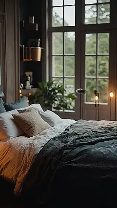 Imagine waking up in this cozy bedroom with a big window overlooking the trees. It’s like your own private forest! You could almost reach out and touch the branches, and hear the birds singing their morning songs. Even if it’s raining, the view is still super cool – like watching nature’s own nature show!