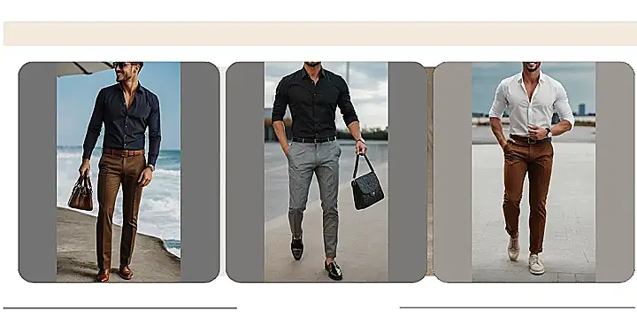 Putting on something a little more formal, like a nice shirt and pants, can actually make you feel pretty awesome, like you’re ready for whatever comes your way – maybe not fighting crime, but definitely ready to walk into a room looking confident. It’s the kind of style that says, “Yeah, I know how to dress,” without you actually having to say anything. Plus, adding simple stuff like a cool belt or watch, just like our guy here, makes the whole outfit pop without needing a secret agent gadget belt.