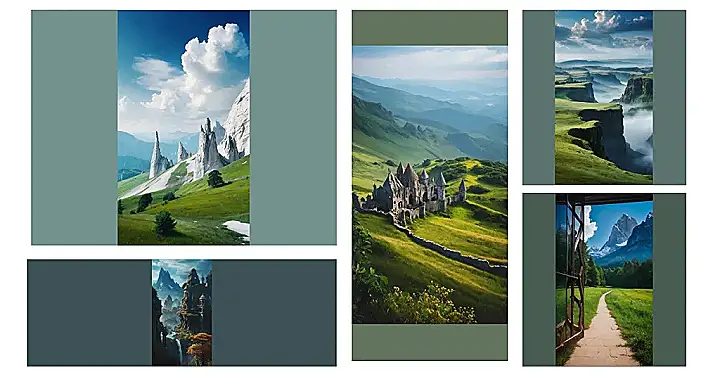 Imagine you’re a brave adventurer, and you stumble upon this mysterious door. It’s slightly ajar, peeking out at a path winding through a field. On the other side of the field, towering mountains with snow-capped peaks reach for the sky. It looks like a scene straight out of a fantasy novel! Would you be brave enough to step through the doorway and see where it leads?