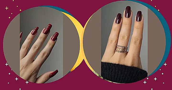 This picture shows some seriously cool nails! That deep red color is totally giving off autumn vibes, which is perfect for when the weather gets chilly. It looks like the person in the picture is also rocking a super fancy ring with a big sparkly stone. It’s like a princess ring, but maybe a little more modern. Maybe they’re getting ready for a fancy event, or maybe they just want to feel extra glam! Either way, they’re definitely making a statement with their bold nails and dazzling jewelry.