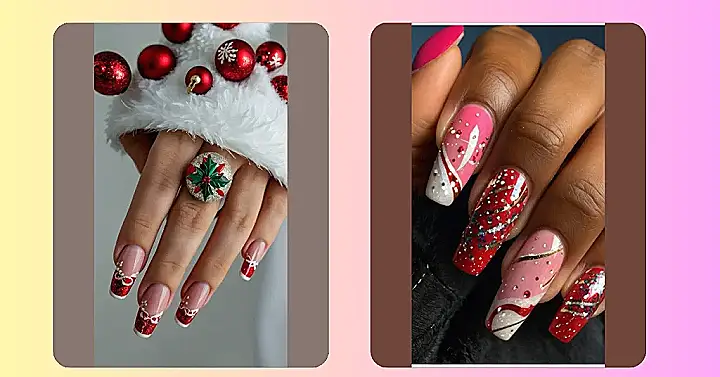 Forget boring, basic manicures! This design mixes pretty pinks and bold reds in a way that’s surprisingly elegant. The swirls of glitter and gold add a touch of magic, like tiny Christmas lights twinkling on each nail. It’s the kind of manicure that will make you feel confident and festive, whether you’re unwrapping presents or rocking around the Christmas tree. Plus, it’s so much more fun than wearing a reindeer sweater (although those are cute too!).