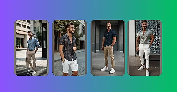 So, you want to rock a men’s shirt outfit, huh? Well, check out this dude! He’s got the “business on top, party on the bottom” look down. It’s like he couldn’t decide if he was going to a fancy lunch or hitting the beach, so he just said, “Why not both?!” The white shirt is a classic, but those brown shorts are throwing a curveball that’s kind of awesome. He looks ready to negotiate a huge deal then immediately go for a swim!