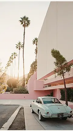 This picture screams Los Angeles aesthetic! Just imagine: you’re cruising down a palm-tree-lined street in your super cool, pastel-colored classic car. The sun’s setting, casting a gorgeous golden glow on everything, and the pink buildings look like they’re straight out of a movie. It’s the perfect Instagram moment, seriously. You could almost smell the ocean breeze (even if you’re nowhere near it!), and feel the chill vibes of a perfect California day. This is total LA goals, right?
