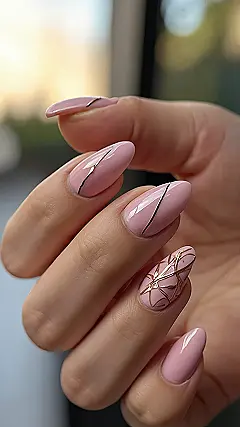 Those nails are seriously next-level! The light pink color is totally cute, like bubblegum but way more sophisticated. Plus, the gold designs are like tiny, elegant fences built right on your nails. I wonder if they could keep my chips safe from my little brother?