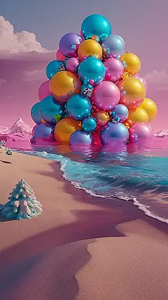 **Paragraph 1:** OMG, check out this totally adorable Christmas wallpaper! It’s like someone took a giant pile of the cutest, shiniest pink, teal, and gold Christmas ornaments and plopped them right into the ocean! Imagine waking up every morning to this dreamy, pastel scene. It’s way more chill than a traditional Christmas tree, right? No needles to clean up, just sparkly reflections on the water. Seriously, whoever came up with this idea is a genius.