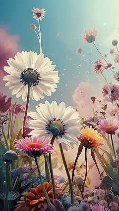 It kinda makes you wonder what the flowers are dreaming about, though! Maybe they’re dreaming about being even bigger and prettier, or maybe they’re dreaming about being part of a huge, beautiful garden filled with other flowers just like them. It’s cool to think that even flowers can have dreams, right? Anyway, the soft colors and delicate blooms are super calming, like a gentle breeze in a peaceful meadow. This picture is definitely my kind of “flower wallpaper” dream!