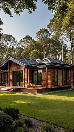 This wood house looks so cool, like a giant, super-stylish tree fort for grown-ups (or teenagers who’ve really hit a growth spurt). Imagine waking up here, surrounded by actual trees, maybe giving your house a little nod because, you know, family reunion with the forest. It’s probably so quiet you can hear squirrels outside plotting their next sneaky acorn raid. The place just screams “cozy,” whether you’re chilling inside with those big windows letting the outside in or hanging out on that sweet wooden deck shown in the picture, ready for a game of cards or just staring at leaves.