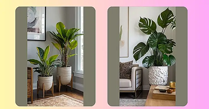 These plants aren’t just sitting pretty; they’re staging a total takeover of this corner, and honestly, we’re not complaining! Just look at how happy they are in their stylish white pots and mid-century modern stands. It’s like a plant spa day—all they need now are tiny robes and cucumber slices. Choosing the right planter is half the battle when it comes to creating a thriving indoor jungle, and these beauties prove that even a simple, clean look can make a HUGE difference. Think of it like giving your plants the ultimate Instagram-worthy photoshoot setup.