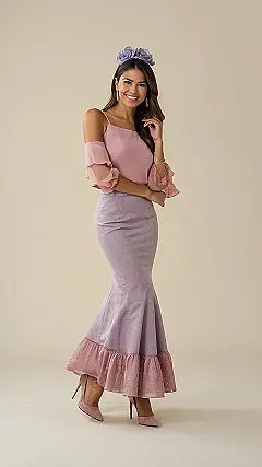 Check out this super cute skirt and top outfit! It’s like, the grown-up version of Barbie going to a fancy tea party, but totally wearable for, like, a school dance or even just feeling extra confident on a regular Tuesday. The colors are soft and pretty, making it look super put together without even trying hard.