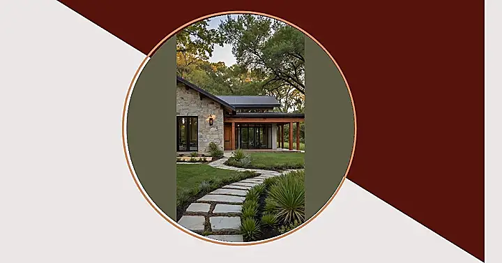 That curved stone pathway leading up? It’s practically begging you to skip down it, though maybe just walk normally so you don’t face-plant. And with all the lights glowing warmly against the evening sky, this exterior is putting on a whole mood lighting show. It feels super welcoming, like it’s saying, “Hey, come on in, we promise there are snacks!” It proves a ranch house exterior doesn’t have to be boring; it can be a total showstopper, making the neighbors whisper about how cool your place is (in a good way, of course).