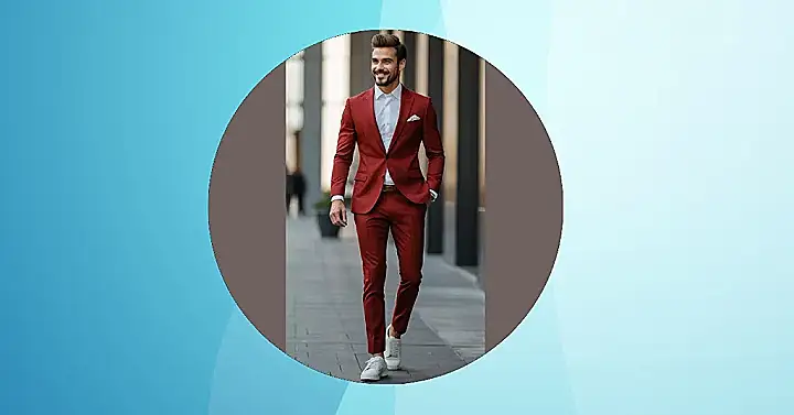 Seriously, though, who knew a red suit could look so good with white sneakers? It’s like the perfect blend of formal and casual, all rolled into one amazing outfit. This isn’t your grandpa’s suit; it’s fresh, modern, and totally unexpected. It’s the kind of outfit that makes you want to ditch your jeans and try something bolder, something that says, “Hey, I’m confident and I know it!” It’s also a great example of how to make a statement without shouting – a little bit of red goes a long way, especially when it looks this good.
