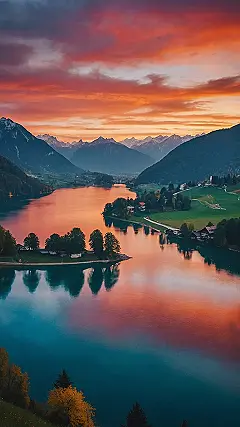 Want to make your phone background way cooler than your friend’s meme collection? This Austrian wallpaper is like a postcard from another dimension. Those mountains in the background are so majestic; they’re probably judging everyone’s fashion choices. And that lake? It’s reflecting the sunset so perfectly, it’s like a giant, colorful mirror for the sky. Your phone will basically become a portal to a chill Austrian paradise!