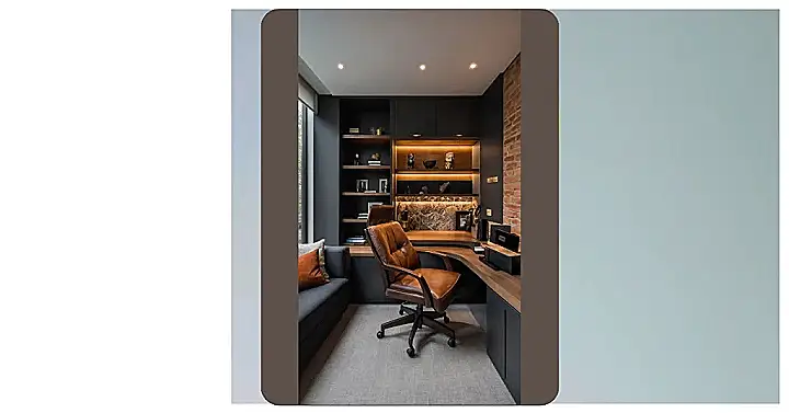 Look at this home office setup! It’s so fancy, it practically screams, “I might actually finish my homework here!” That giant brown chair looks comfy enough to take a nap in, which is totally a valid use, right? Forget trying to balance your laptop on your knees while trying to focus; this setup makes you feel like you’re in a movie, ready to conquer that tricky essay or maybe just look really important while scrolling through, uh, research websites.