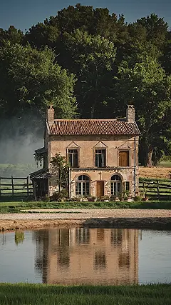 The pond in front of the house is like a giant mirror, reflecting the house and the surrounding nature. It’s almost like a painting, except it’s real! Imagine sitting on the edge of the pond, watching the sun set and the sky turn a beautiful orange color. You could spend hours just watching the water and the reflection of the house, lost in your own thoughts. It’s a peaceful, calming place, and that’s exactly what you need sometimes, right? This rural house might be just the ticket for a break from the busy world.