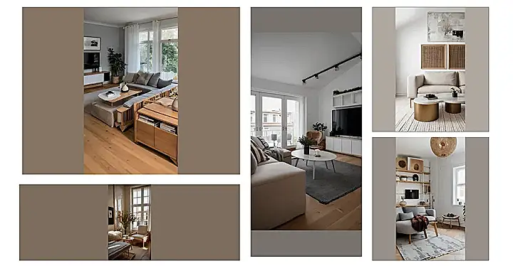 This living room screams “Scandinavian home decor” without even trying. It’s like someone took a page out of a design magazine and just slapped it on the wall, except instead of looking too fancy, it looks totally chill and comfy. The light colors and natural textures are perfect for relaxing after a long day, and the simple artwork adds a touch of sophistication without being overwhelming. It’s the kind of place you’d want to curl up with a good book and a cup of tea, maybe even a slice of cinnamon roll.