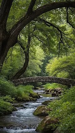 This picture is basically the ultimate “do not disturb” sign for your brain. Forget trying to finish that essay or scrolling endlessly through feeds – this is where your stress takes a vacation. Look at that stream! It’s probably the only thing moving fast here, and it’s doing it in a totally chill way. This little stone bridge looks like it leads to a place where homework deadlines are just a myth and the only drama is whether a squirrel will steal your trail mix.