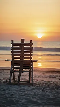Imagine this: you’re chilling on a beach, the sun’s painting the sky in amazing colours, and you’ve got the comfiest-looking chair ever. It’s like someone magically placed a piece of peaceful wallpaper right there on the sand, but instead of a picture, it’s a real-life sunset! This is the perfect spot to forget about homework and just breathe in that salty air. It’s so peaceful, even the waves seem to be whispering “relax.”