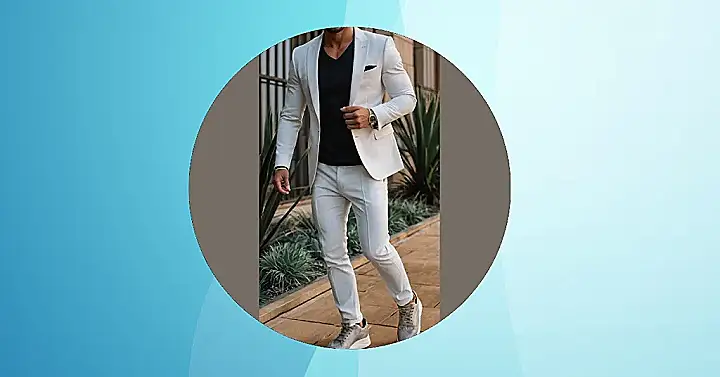 Forget the stuffy old tuxedos; this outfit is all about effortless style. It’s like wearing pajamas but looking a million bucks – who wouldn’t want that? The crisp white jacket and pants give off major “I’m successful, yet relaxed” vibes, and that black t-shirt underneath keeps things casual and comfortable. This whole look screams sophisticated casual, which is basically the ultimate fashion goal. The best part? You can wear it to anything, from a fancy dinner to a casual hangout – it’s so versatile, it will become your go-to choice.