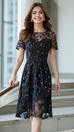 This outfit looks like it’s straight out of a postcard from Paris! The dress is so pretty and delicate, like something you’d see in a fancy boutique window. It’s the kind of frock that makes you want to stroll along the Seine River, even if you’re just walking down your street.
