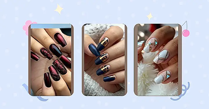 These nails are like a mini-celebration on your fingertips! Imagine a fancy party in February, all dark and mysterious like a snowy night, but with sparkly gold accents like the disco ball shining. That’s exactly what these nails are – a chic and sophisticated look that’s perfect for a February birthday, Valentine’s Day, or just because you deserve some nail art that’s totally Instagram-worthy. Who needs chocolates when you have this?