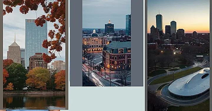 Wow, check out this picture! It’s like Boston decided to put on its best autumn outfit. We’ve got these amazing skyscrapers, all tall and modern, peeking out from behind a vibrant explosion of fall colors. It’s a total mix of the city’s busy energy and the peaceful beauty of nature—kind of like a really cool photobomb by Mother Nature! It’s almost as if the buildings are wearing fiery autumn leaves as hats!