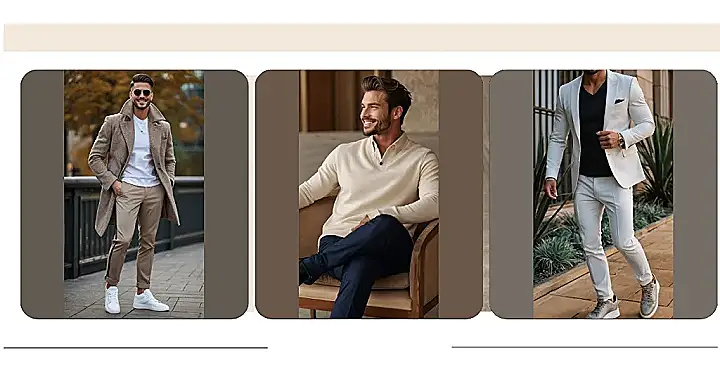 This guy’s outfit is seriously sharp! He’s rocking a beige blazer and gray trousers – like a super-smooth, sophisticated secret agent, but instead of chasing bad guys, he’s probably off to a fancy art gallery opening or a high-end coffee shop. It’s the kind of outfit that makes you want to ask, “Where’d you get that?” The whole look screams “men’s high-end fashion,” and honestly, who wouldn’t want to look this good? It’s the perfect blend of cool and classy, making even a simple stroll look like a runway show.
