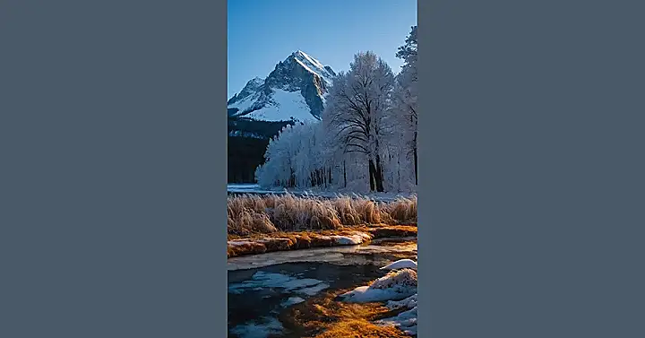 Hey there, wallpaper-lovers! Imagine this: you’re snuggled up inside, maybe with a hot chocolate (extra marshmallows, please!), and BAM! You’re transported to a snowy wonderland in Europe. This picture is like a secret portal to a super chill winter scene. That mountain is totally rocking the snow-capped look, and the frosty grasses by the water are giving off major “winter-is-coming-but-I’m-totally-okay-with-it” vibes. It’s the kind of view that makes you want to build a snowman (even if you’re just imagining it), grab your gloves and hat and maybe even learn to ski or snowboard!