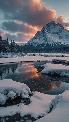 Paragraph 1: Okay, so this isn’t *technically* Europe. But if you searched “winter in Europe wallpaper,” you’d probably click on this majestic scene in a heartbeat! Look at those mountains, dusted with snow like someone went crazy with a giant, fluffy paintbrush! The sunset is painting the sky in shades of orange and pink, reflecting beautifully in the icy river. It’s like a postcard from a fairytale land – the kind where mischievous snow sprites hide under frosty bushes. This dreamy picture is perfect for your laptop background – makes even homework feel a little more magical!