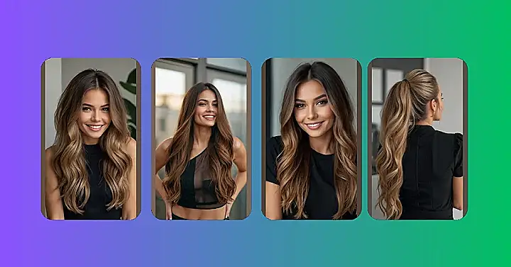 This gorgeous model is rocking a seriously stunning hair transformation—perfect for ditching those summer highlights and embracing the cozy vibes of winter. Imagine trading your sunshine blonde for rich, warm brown tones like hers! It’s like swapping your flip-flops for fuzzy socks – instantly more comfortable and stylish. Think of all the pumpkin spice lattes you can now match your hair to!