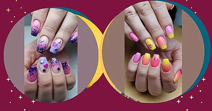These nails are like a sunny vacation in the middle of winter! Imagine you’re sipping hot cocoa by a fireplace, but your fingertips are sporting a vibrant sunset ombre. Those tiny hearts add the perfect touch of cuteness – it’s like a little secret message for your own happy place. Who needs a snow day when you have nails this cheerful?