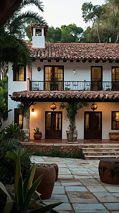 This hacienda-style home is like stepping into a storybook! Imagine yourself lounging by the pool (which we can only assume is somewhere amazing!), sipping something fruity and delicious under the warm sun. That terracotta roof is practically begging for a fiesta, and those charming lanterns hanging on the porch? Pure magic! It’s the kind of place where you could easily spend a whole summer, napping in a hammock and pretending you’re a wealthy Spanish aristocrat (without all the stuffy rules, of course).
