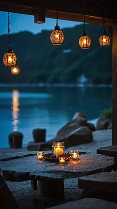 This picture is basically what peak summer vibes look like, right? Like, instead of scrolling through TikTok for hours, you could actually be chilling here with these cool lanterns and candles lighting up the night. But since teleporting to a magical beach patio is tricky (still waiting for that app update), slapping this gorgeous scene on your phone screen is the next best thing. Say goodbye to that boring default wallpaper that’s probably seen more sad homework assignments than sunshine!