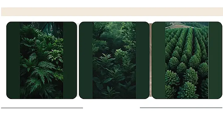 This picture is like a giant green carpet for the forest! Imagine you’re a tiny bug crawling around – you’d be lost in a sea of green. It’s like all the trees decided to have a big, leafy party and got super close to each other for a group hug! Those trees are all lined up in a neat row, like they’re practicing their dance moves for the forest disco.