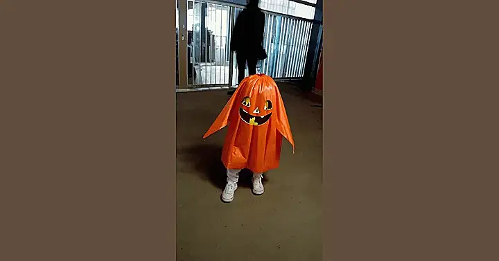 The best part is how the costume is a bit silly and unexpected. It’s not your typical scary ghost or vampire. It’s a pumpkin that’s just trying to have a good time. And who could resist a pumpkin’s happy grin? The best costumes are the ones that make people laugh, and this one definitely fits the bill!