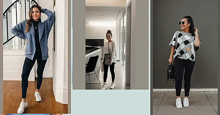 Black leggings are basically the superhero of your wardrobe. They go with everything! Seriously, you could pair them with a potato sack and still look somewhat put-together. The white sneakers are the perfect finishing touch, adding a touch of casual coolness. Basically, this outfit is the ultimate “I’m comfy, I’m cute, and I’m ready for whatever the day throws at me” look. Spring vibes? Absolutely!