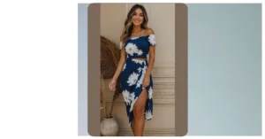 Check out this dress! When you hear “mother’s dress,” you might picture something that screams ‘old school,’ maybe a bit dusty or floral in a way that makes your eyes hurt. But nope, look at this one! It has that sleek navy top and a skirt that’s basically a walking piece of cool blue art. Imagine your mom stepping out in this – you’d be like, “Okay, Mom, where have you been hiding this level of chic?” It totally flips the script on what a typical ‘mother’s dress’ can be and proves they might just have a secret stylish side.