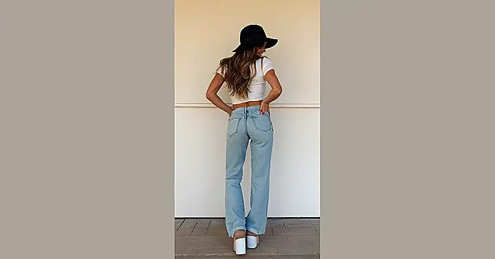 Hey there, fashion fans! Check out this awesome outfit – it’s all about those super cool straight-fit jeans. They’re like the Goldilocks of jeans: not too tight, not too baggy, just right! Paired with a simple white top and some stylish heels, it’s a look that’s both comfy and totally chic. You can easily rock this look to school, to hang out with friends, or even to that fancy coffee shop you’ve been dying to try. Forget complicated styles; this one’s a total breeze.