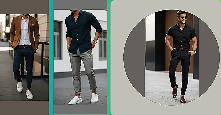 Dressing up for a fancy party might sound like you need a full-blown penguin suit, but men’s cocktail attire is way cooler and less stuffy than that. Think of it as your chance to look sharp without feeling like you’re heading to a job interview… unless the job involves taste-testing tiny sandwiches. Look at the guy in the picture! He’s got a snazzy dark shirt, slick grey pants, and wait for it… clean white sneakers! That’s the vibe – polished enough for the event but comfortable enough that you won’t feel like you’re trapped in a suit of armor while trying to grab a mocktail.