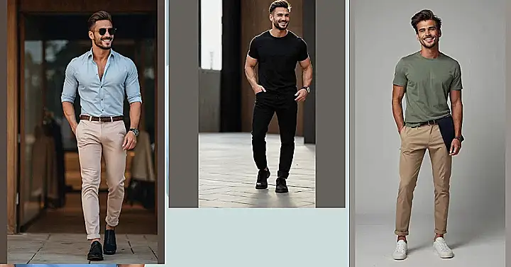 Think of this outfit as the “cheat code” for looking good without trying too hard. It’s like showing up to a party in your coolest jeans and favorite band tee, but this time, you’ve leveled up the jeans to stylish khakis and ditched the band tee for a solid color that makes you look instantly put-together. The best part? You probably already have half of these pieces in your closet.