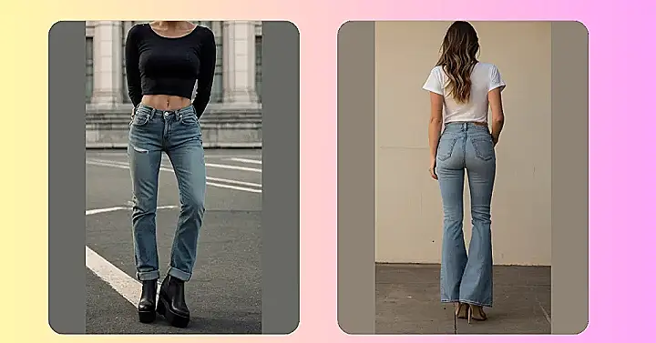 Want to level up your wardrobe but tired of the same old skinny jeans? These denim jeans bring some serious ’70s flair with a modern twist. Pair them with a cute crop top like this one, and you’re ready to hit up the mall, conquer the school hallways, or even just vibe out to some tunes in your room. You will look amazing!