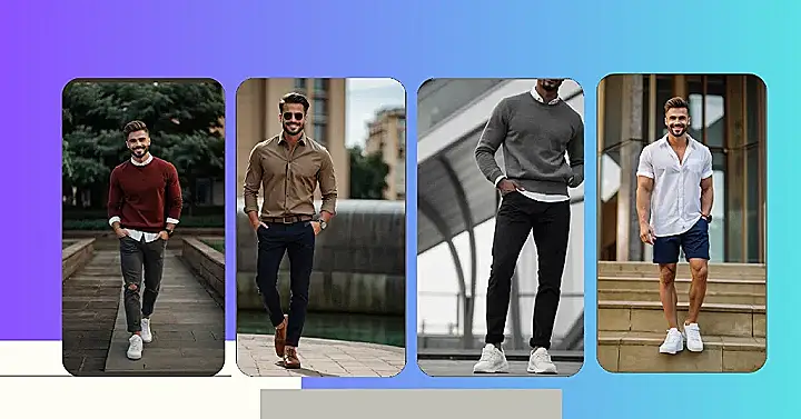Forget stuffy suits! This look shows that men’s fashion casual outfits are all about relaxed vibes and killer style. The colors are subtle and sophisticated, but the overall feel is totally chill. Imagine him strolling through the park, or maybe just crushing it at the school library. The point is, this outfit is a major mood. You don’t need a fancy label to look this good—just confidence, a killer smile, and a great pair of sneakers.