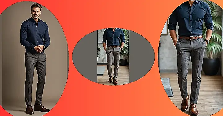Check out this guy’s setup: a cool grey shirt, sharp navy pants, a smooth belt, and snazzy shoes. It’s like each piece works together to whisper, “Yep, I’m here to handle business.” You put on an outfit like this, and suddenly you feel like you could ace that presentation or negotiate a really good deal on pizza toppings. It’s funny how just changing your clothes can make you feel all professional and important!