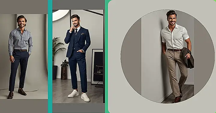 Check out this dude looking sharp! He’s rocking the classic “business casual but make it cool” vibe. That clean white shirt, those perfectly creased pants, and the smooth brown shoes with a matching belt make him look ready to close a big deal or maybe just get the best table at the cafe. It’s like his clothes are saying, “Yep, I’m here to handle business,” even if the only business is remembering his grocery list. This is a prime example of men’s business outfits that aren’t afraid to look good while getting stuff done.