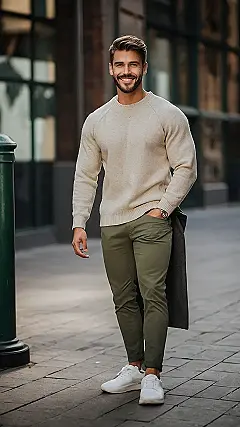 So, you want to look like you know what you’re doing without actually trying too hard? This is your go-to look. It’s like the grown-up version of wearing jeans and a t-shirt, but with a sweater and slightly fancier pants. Perfect for impressing your crush, or at least looking like you didn’t just roll out of bed.
